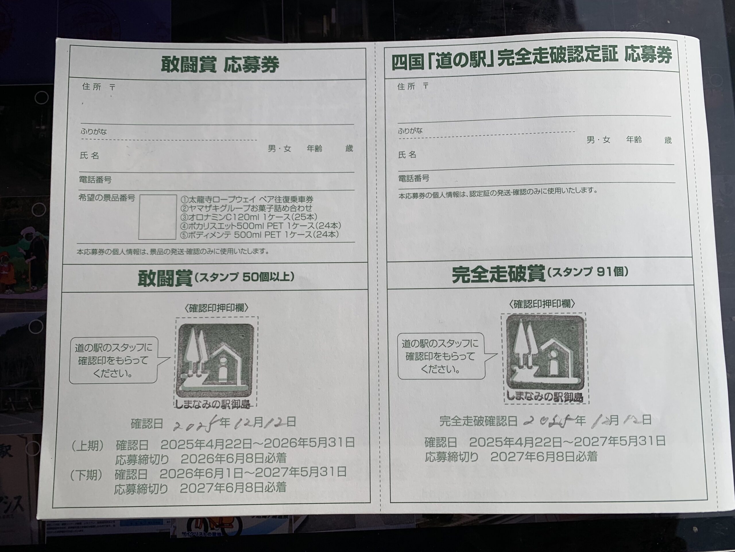 シニア 2025年12月12日・1️⃣・四国 > 愛媛県=道の駅スタンプラリー旅(9日目) 2025年12月12日 2025年12月12日 旅人 五郎八 Facebook postはてブLINEPocketFeedly しまなみ海道 愛媛県>道の駅 よしうみいきいき館 愛媛県>道の駅 伯方S・C パーク 愛媛県>道の駅 上浦町多々羅しまなみ公園 愛媛県>道の駅 しまなみの駅御島 四国 四県・道の駅91駅全駅制覇 ‼︎ 2025年12月12日金曜日 ・・・午前11時‼︎ 道の駅しまなみの駅御島で・・・ 四国地区全91駅制覇・・・達成しました。 Facebook postはてブLINEPocketFeedly